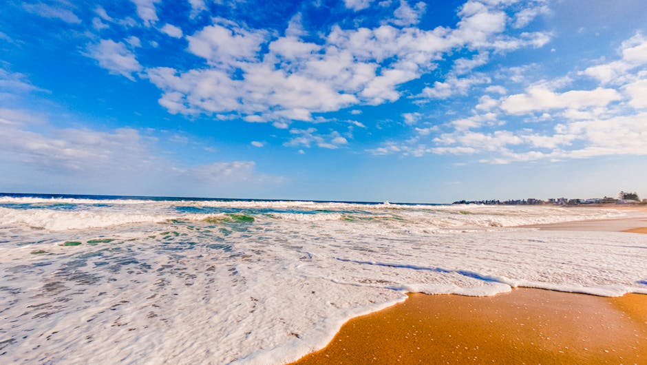 Beach Scenery – Vibrant beach scene with waves crashing on shore #35853044