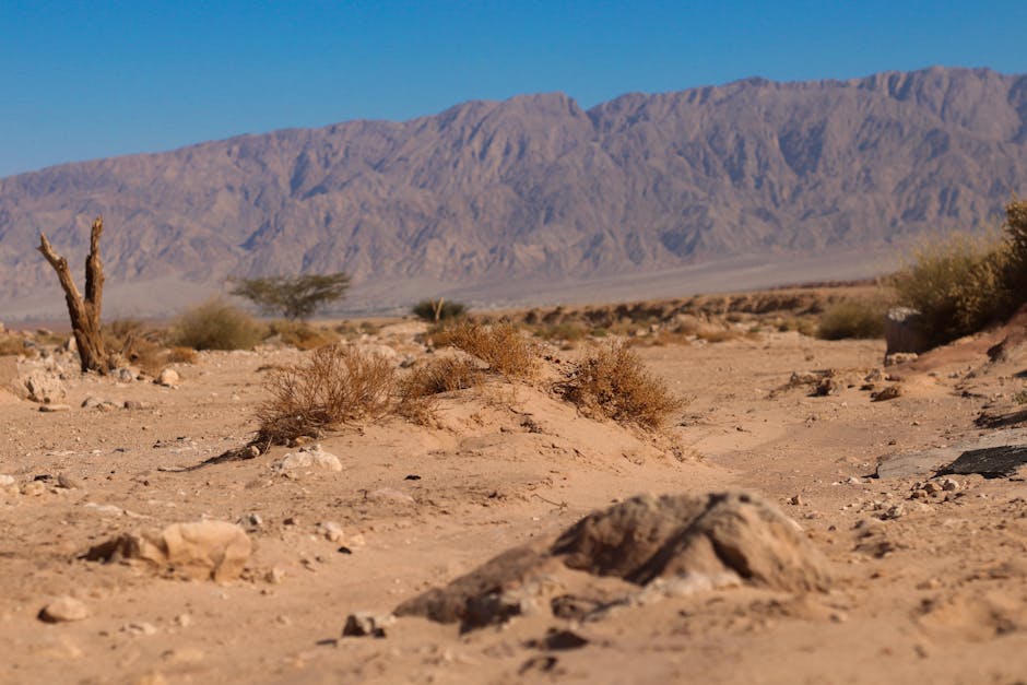 Desert Wilderness – A vast, dry desert landscape with rugged mountai #9359348