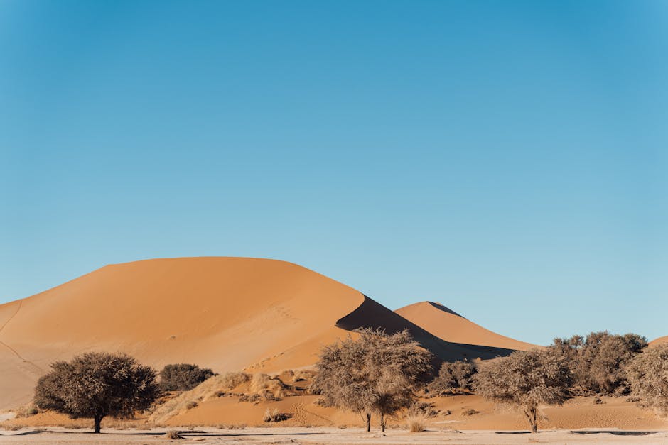 Desert Wilderness – Stunning view of sand dunes and trees in Namibia #32459097